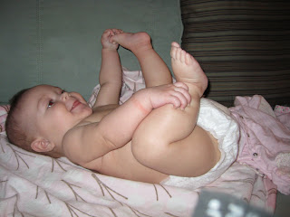5 months old and has done so much already. She is so much fun she is giggling, rolling over, grabbing her feet. She fell asleep at the right time when we were out at a nice restaurant in Annoplis, MD. She had her first bon fire at Brady and Kelsey's.